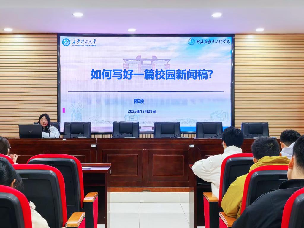 在第一次理论课程中,陈颖以“如何写好校园新闻稿”为主题,聚焦校园新闻稿概述、写作要领、写作规范以及写作误区四个部分,结合团学工作中学生撰写的新闻稿实例,重点讲解了新闻标题的提炼技巧、导语的概括方法、主体的逻辑展开及结尾的合理升华。授课尾声,陈颖以“多看、多写、多学”寄语全体学员,鼓励学员们要善于观察、勤于学习,主动研读优秀新闻作品,在反复练习中提升笔力,以高质量宣传工作彰显学生活动价值与意义。最后,全体师生进行了合影留念。