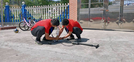 第二部分由吕贤彪老师主持。“风光互补”智能路灯在彭湖村应用非常广泛,在讲座的准备阶段,吕老师特意从村支部借来了一台损坏的发电设备进行研究,同学们在听到正在讲解的就是自己在路上每天都能见到的路灯后也都十分兴奋,提出了很多问题。