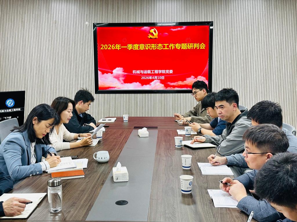 4月10日下午,机械学院党委在工一B411会议室召开2026年第一季度意识形态工作专题研判会议。会议由学院党委书记孔伟红主持,学院领导班子成员、专职组织员、师生党支部书记、全体辅导员等参会。