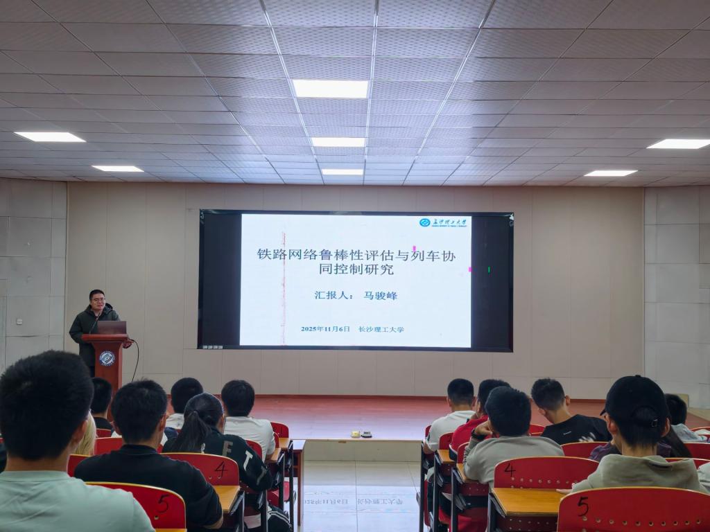 马骏峰以列车自动驾驶的概念为切入点,深度剖析了铁路网络鲁棒性评估和列车虚拟耦合编组控制。他指出,铁路智能化发展不仅让出行更高效,更催生了大量人才需求,为相关专业学子开辟了广阔的职业发展空间。同时,他鼓励同学们将课堂知识与行业实际结合,主动适应行业发展,为交通领域的智能化建设贡献青春力量。