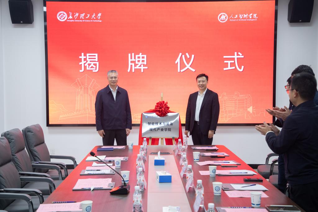 4月21日下午,长沙理工大学人工智能学院举行了智能技术与装备湖南省现代产业学院揭牌仪式。中车株洲电力机车研究所等七家企业领导,长沙理工大学校长蒋昌波,人工智能学院院领导、系部负责人、教师代表参加了会议。