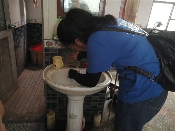 上午10:00,调研团抵达双峰县青树坪镇镇政府,在青树坪镇水利站站长匡健民带领下,下村拜访村民并进行问卷调查。实践团拜访的第一站是华力村,村主任刘甲能介绍华力村已有3组约70户居民用上了于2014年建成的村级工程的自来水,村级工程中的水质较好,给村民生活带来了极大的方便,在省水利厅前年曾派人到访此地采集水样带回检测。通过对华力、金鑫、界峰、栗山新村四村的调查,实践团发现青树坪镇下属各村落农村饮用水来源主要是村级工程供水、取用山泉水、打井取水三种,四村受访村民均表示对自家饮水水质放心,村级工程供水用户反映说除了偶有供水不足的情况外,对供水水质都十分满意。
