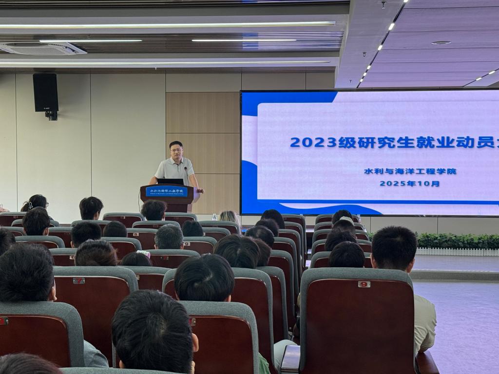 为积极应对当前就业形势,全力推动研究生高质量就业,10月11日,水利学院召开了2026届研究生就业动员大会。会议由研究生辅导员杜丘主持,院长陈杰、就业专干綦丽出席会议。