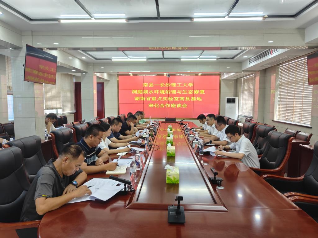 当天,校地双方还在县水利局举行了深化合作座谈会,围绕基地建设与合作展开深入交流。会上,长沙理工大学相关负责人详细介绍了初步拟制的人才培养工作方案、技术攻关方案及学生创新创业项目孵化计划。与会人员结合南县水资源现状、生态保护需求等实际情况,就项目选定、水环境治理难点、如何丰富基地建设内涵等议题展开热烈讨论,特别就如何引导学生团队参与实地调研、技术研发与环保创业等达成广泛共识。