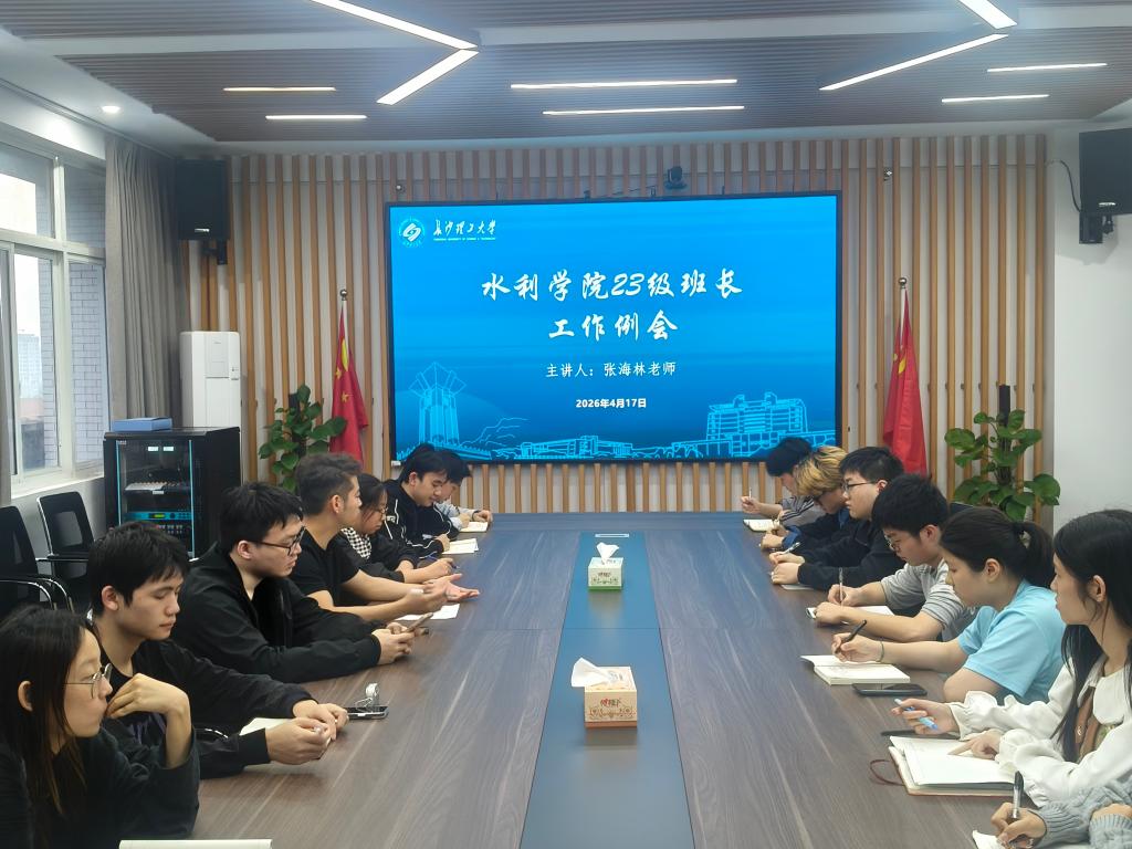 4月17日,水利学院在新能源一栋420会议室召开2023级班长工作例会,辅导员张海林老师主持会议,全体班长参会。会议围绕纪律管理、学业帮扶、升学就业、班委建设等重点工作展开部署,旨在统一思想、明确任务,提升学生骨干履职能力,筑牢毕业季班级管理基础。