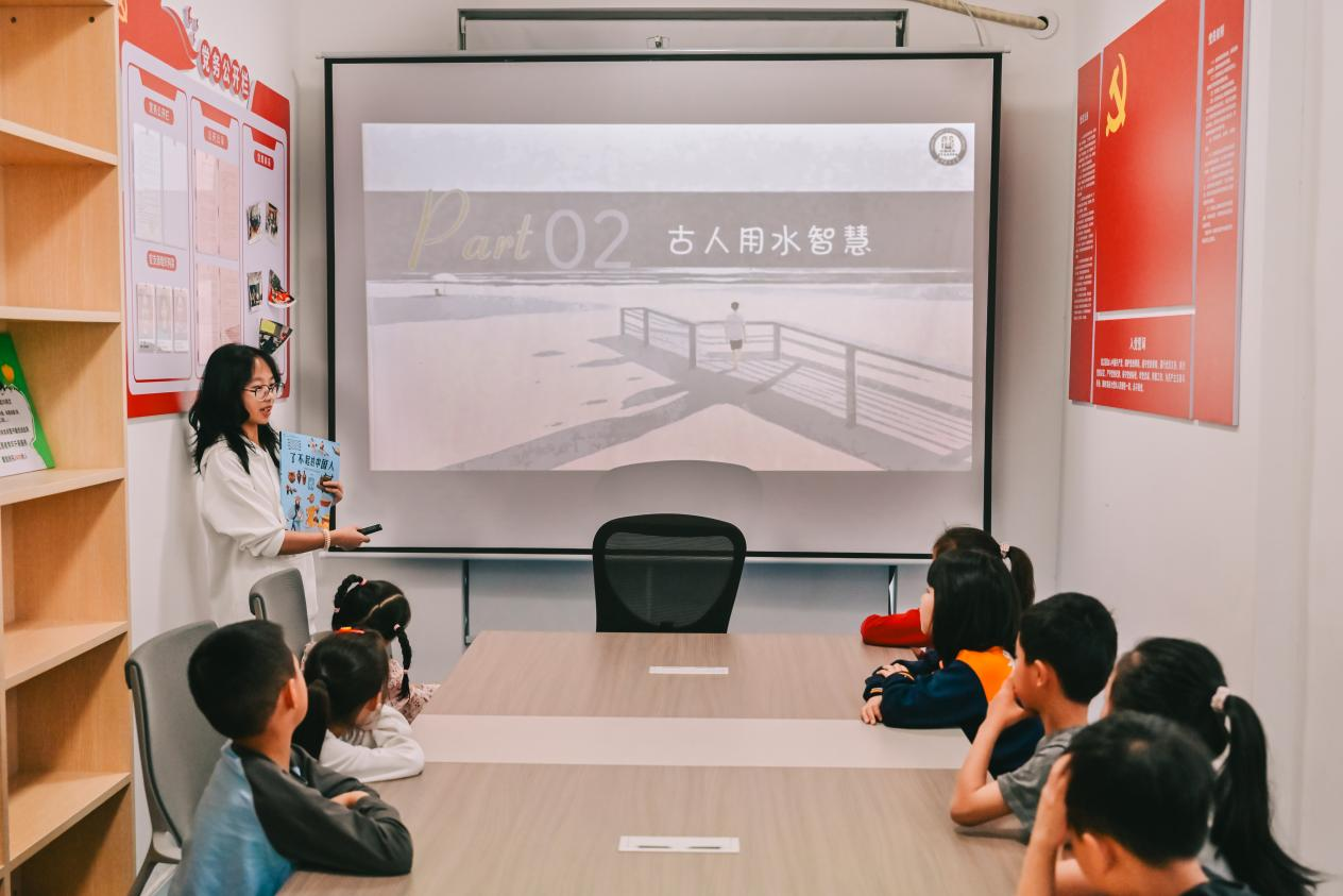 活动以《了不起的中国人——水的故事》为核心读本,精心设计了“水的奥秘”“古人治水智慧”“向水学习”“我们都是小水滴”四大主题模块。从水的基本特性到都江堰、坎儿井的千年智慧,从“上善若水”的哲学思想到“水滴石穿”的坚韧品质,志愿者们用生动的语言、趣味的互动问答,将书本知识转化为一堂鲜活的阅读课。孩子们踊跃举手回答问题,分享自己的奇思妙想。在轻松愉悦的氛围中,志愿者们引导孩子们从自身做起,树立节水护水意识,守护每一份来之不易的清澈。孩子们听得津津有味,不仅读懂了水的故事,更深刻理解了水的重要性,节水护水的种子悄然在心中萌芽。