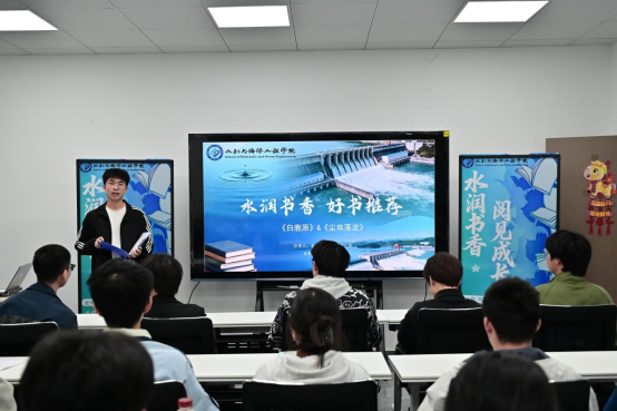 “经典文学以独特的意境与张力,赋予了我们直击心灵的审美体验。”水电特岗2401班熊煦轩同学带领大家走进《雪国》的空灵与静谧,感受《喧哗与骚动》里文字的力量与深度。启动仪式在沉浸式荐书分享中拉开帷幕,来自不同专业的6位同学依次登台,带着精心准备的书目与真挚感悟,带领在场师生穿越文字的山海。船海2401班张琪以《病隙碎笔》《卡拉马佐夫兄弟》为引,娓娓讲述阅读如何让人直面苦难、明晰成长;水利类2407班易之睿从《长安的荔枝》的一骑红尘,走到《额尔古纳河右岸》的山林烟火,用文字勾勒历史温度与民族情怀;水利类2404班苏三龙立足乡土,深情讲述《尘埃落定》《白鹿原》里的时代变迁与家族记忆,引发全场强烈共鸣;港卓2401班谢道安借《中国文化要义》《冷战的终结》两本书,在文化根脉与世界格局中拓宽视野;给排水2402班张博文满怀敬意地分享了《邓小平时代》这本书,通过波澜壮阔的历史叙事,传递了他的使命担当。