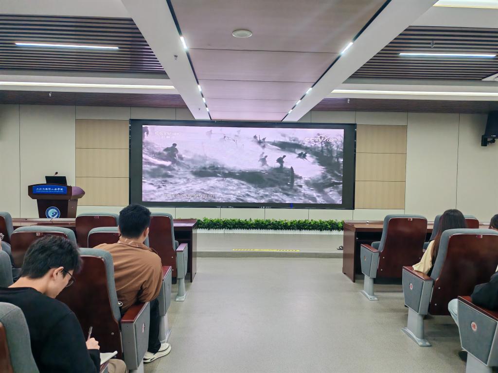 活动伊始,全体人员共同观看了纪录片《血战长津湖》。影片真实还原了长津湖战役的艰苦卓绝,生动刻画了志愿军战士不畏强敌、舍生忘死的钢铁意志与英雄气概。在随后的宣讲环节中,“水润初心”宣讲团成员蔡都军同志以特级英雄杨根思、模范医护解秀梅、登高英雄杨连第等英模事迹为主线,深情讲述了他们在烽火岁月中展现的忠诚与担当,并结合新时代背景,深刻阐释了伟大抗美援朝精神的核心内涵与时代价值。