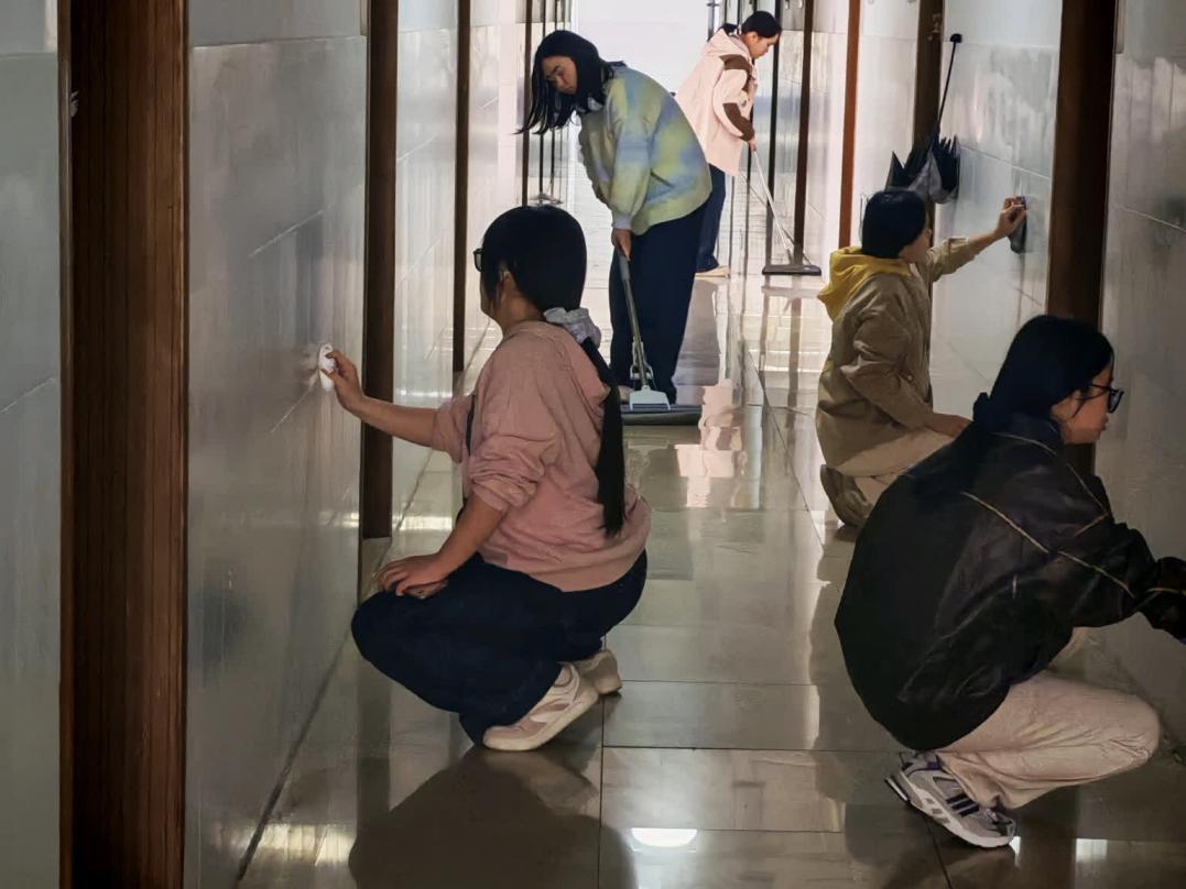 活动期间,志愿者们以小组为单位,分批次对学生宿舍行健轩一栋,四栋和六栋公共区域开展环境卫生整治,依次完成擦灰、清扫、拖地及全面消杀等工作;同时对各楼栋公共区域水龙头、饮水机等设施进行隐患排查,并及时向宿舍管理人员报备。志愿者们以饱满的精神状态高效完成各项任务,充分展现了水利学子吃苦耐劳,乐于奉献的优良风貌。