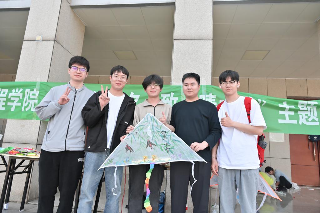 闯关成功后,各组迅速投入风筝创作。调色、描线、扎骨架,分工明确、创意迸发。同学们在风筝上写下鼓励话语、春日心愿或绘制水利元素图案,融入专业特色。东风渐起,二十余只风筝次第升空,五彩斑斓。