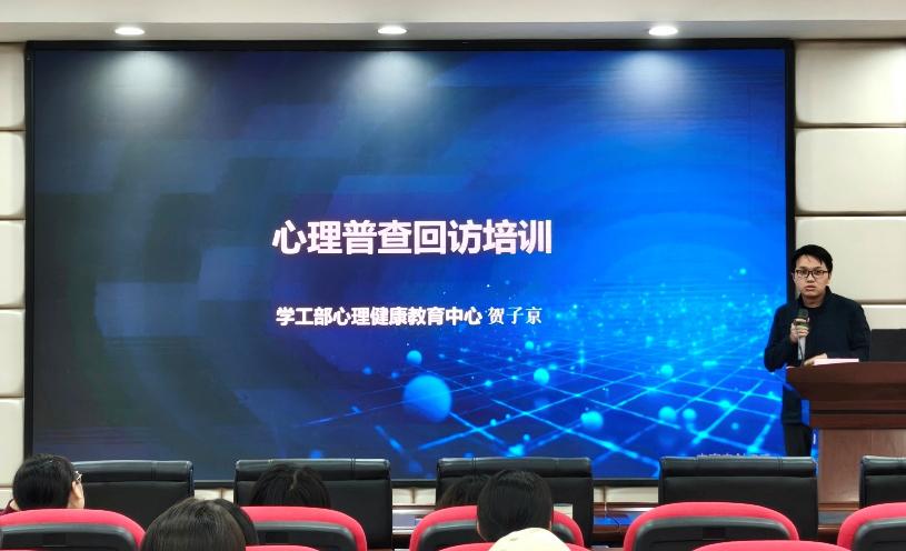 2025年11月7日下午,食品与生物工程学院在工科三号楼A320会议室举办心理普查回访专题培训会。会议特邀长沙理工大学心理健康教育中心贺子京老师担任主讲,院党委副书记练黎旋出席,学院全体参与心理普查回访工作的教师参加。本次培训旨在进一步提升教师在学生心理状态评估与访谈方面的专业能力,推动心理普查回访工作精准、规范落实。