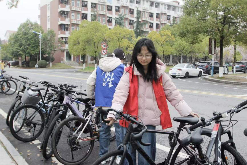 学院75名志愿者身着红色马甲,手持扫把等卫生工具,分组前往指定清洁区域进行清洁工作。志愿者们分工合作、相互配合,累计清扫教室15间,清理卫生死角20处,规整自行车70余辆,教学区、阅览区及校园公共区域面貌焕然一新。