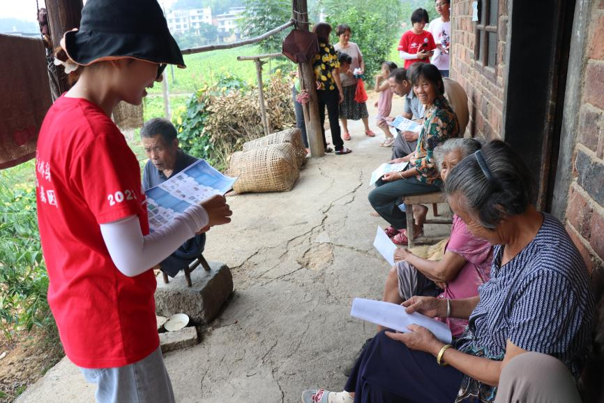 “农村自建房一定要安全选址、规范施工、正确使用……”,实践团成员彭叶辉在房屋与桥梁安全知识科普讲座中,通过PPT展示、科普视频、案例分析等方式向村民普及房屋、桥梁基本常识,帮助当地村民提高安全意识。在走访调查过程中,实践团挨家挨户发放住房与城乡建设部发布的《农村自建房安全常识》宣传册,结合村民房屋情况为其提出安全建议。