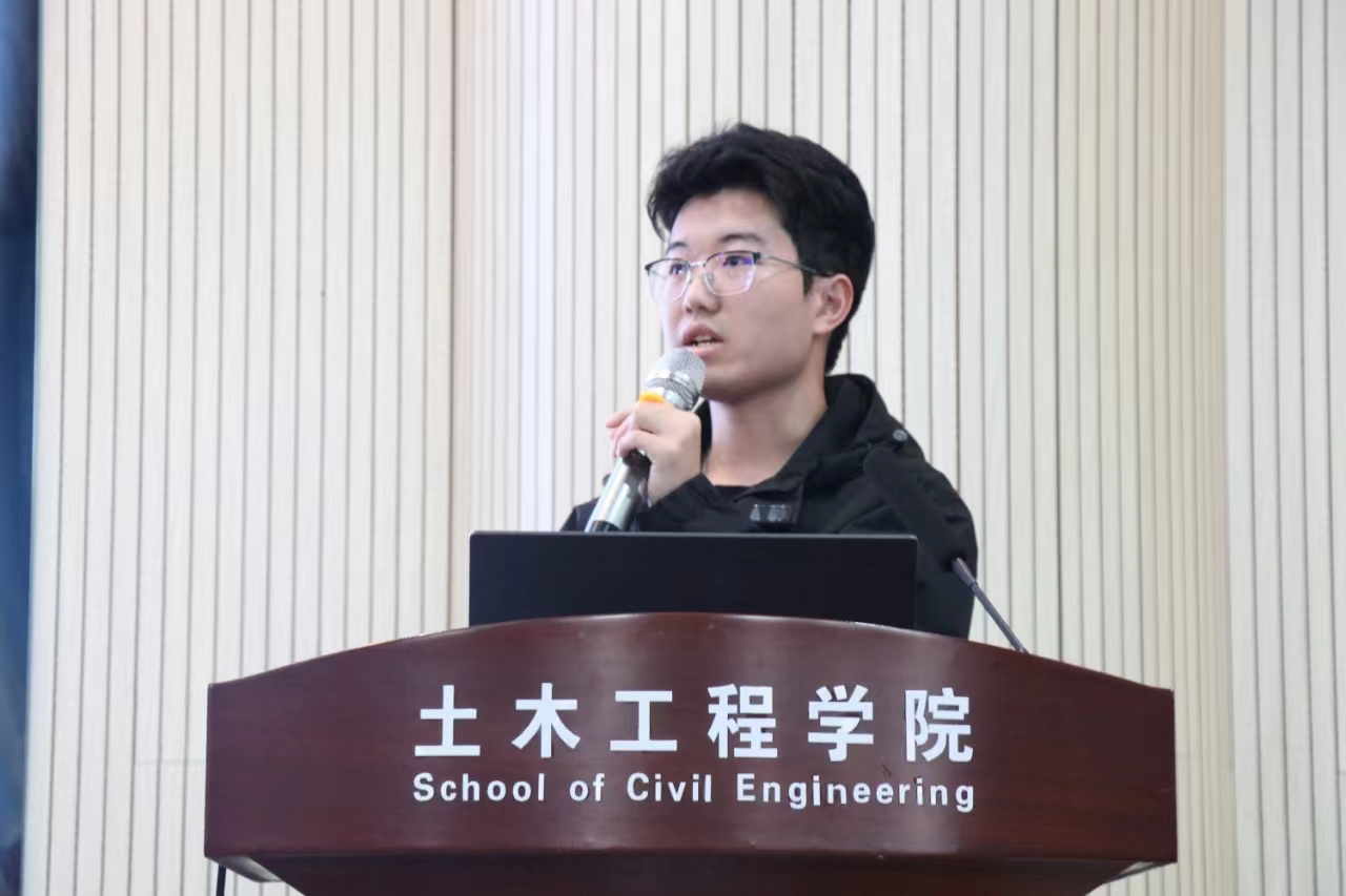 高年级学生周苇朝等进行了保研经验分享,他们展示了在大学期间的收获,重点分享了自己在结构设计大赛、力学竞赛、“挑战杯”大赛、“互联网+”大赛等方面的经验,用自己的故事鼓励更多的同学积极投身学习和实践。