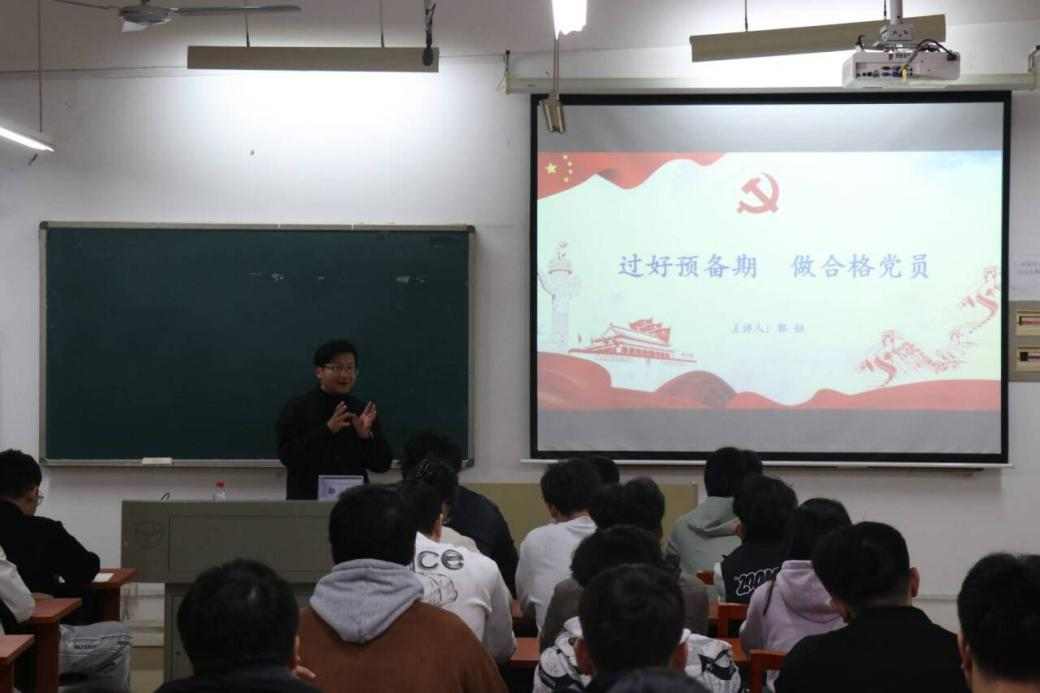 课上,郭恒主要从“预备期的作用与意义、党员教育管理、预备期间注意事项和预备党员转正的程序”四个方面进行详细地讲解。他结合身边预备党员在思想和行动上的成长案例,强调预备期是“思想提纯、行动提能”的关键阶段,每一个环节都需要高度重视和严肃对待;他从理论学习、组织生活、先锋作用三个维度,点明预备党员在预备期里需要守住的“底线”和追求的“高线”;在党员教育方面,他指出,当下预备党员的成长核心是理论学习和实践锻炼相结合,既要学深悟透党的创新理论,也要在学业和集体中践行党员先进性