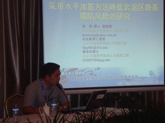 教授受邀在地基处理分会场做了题为“采用水平加筋方法降低岩溶区路基塌陷风险的研究”的专题报告,受到了与会专家与学者的广泛关注。