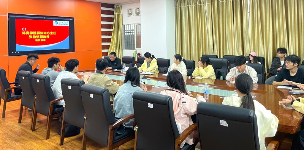 金秋十月,正是运动奋进时。10月14日下午,长沙理工大学第二十三届运动会工作部署会在体育学院会议室顺利召开。会议由体育学院群体中心主任张柏铭主持,总裁判长李卓为、编排负责人吴冕、集体项目负责人李杰及各学院24位新任学生体育部长共同参会。