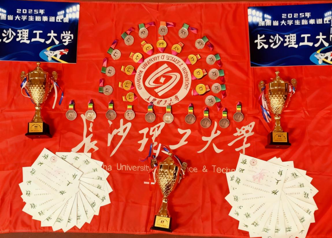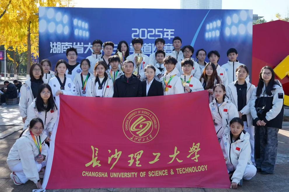 2025年11月25日至30日,2025年湖南省大学生跆拳道比赛在湖南警察学院举行。长沙理工大学跆拳道队奋勇拼搏、表现突出,最终以5金6银7铜的优异成绩闪耀赛场,并包揽竞技、品势团体总分双亚军,生动诠释了长理学子昂扬向上的精神风貌。在男子团体品势、竞技混合团体项目中夺得冠军,个人竞技项目成功卫冕两个级别的冠军,跆舞取得第四名,实现了竞技、品势、跆舞三大类项目的全面突破。