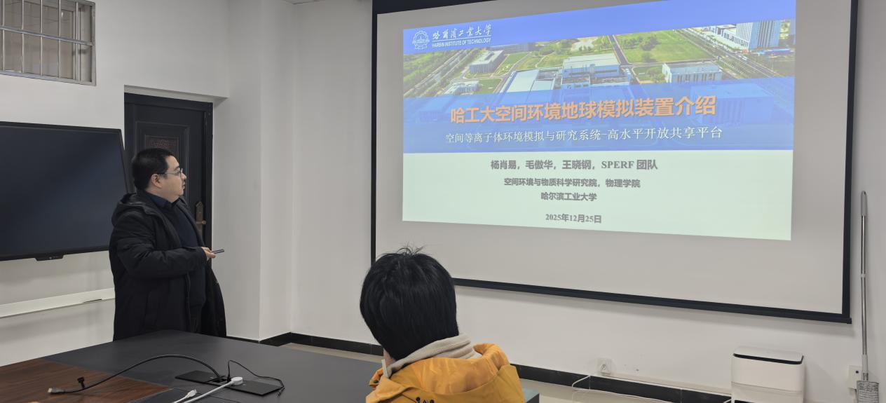 2025年12月25日下午,哈尔滨工业大学杨肖易副教授应邀来我校,在理科楼B310会议室作题为《哈工大空间环境地面模拟装置介绍》的学术报告。报告会由刘斯教授主持,我院师生积极参与。