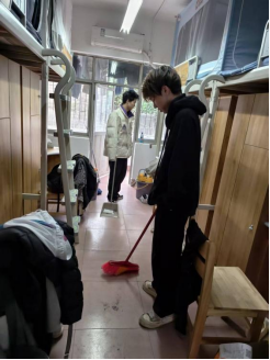 活动现场,同学们以饱满的热情投入清扫工作,各寝室严格按照 “个人区域规范有序、整体环境洁净无污” 的标准进行打扫。大家认真整理书桌、衣柜与床铺,将衣物、书籍、生活用品分类收纳、摆放整齐,彻底清除杂物堆积;针对宿舍公共区域,同学们分工协作,细致清扫地面灰尘、擦拭门窗玻璃,重点对洗漱台、卫生间进行深度清洁,确保宿舍内无异味、无杂物残留。寝室长作为第一责任人,合理划分清扫任务、统筹协调力量,带领成员逐项落实清扫要求,充分展现了团结协作的集体观念与务实肯干的优良作风。