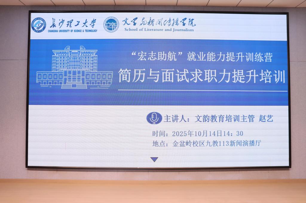 10月14日下午14:30,长沙理工大学文学与新闻传播学院特邀文韵教育培训主管赵艺老师,在九教113新闻演播厅开展“你的文科才华,如何成为求职的王牌”专题讲座,本场讲座共143名学子参与,互动环节同学们踊跃提问,现场气氛热烈。