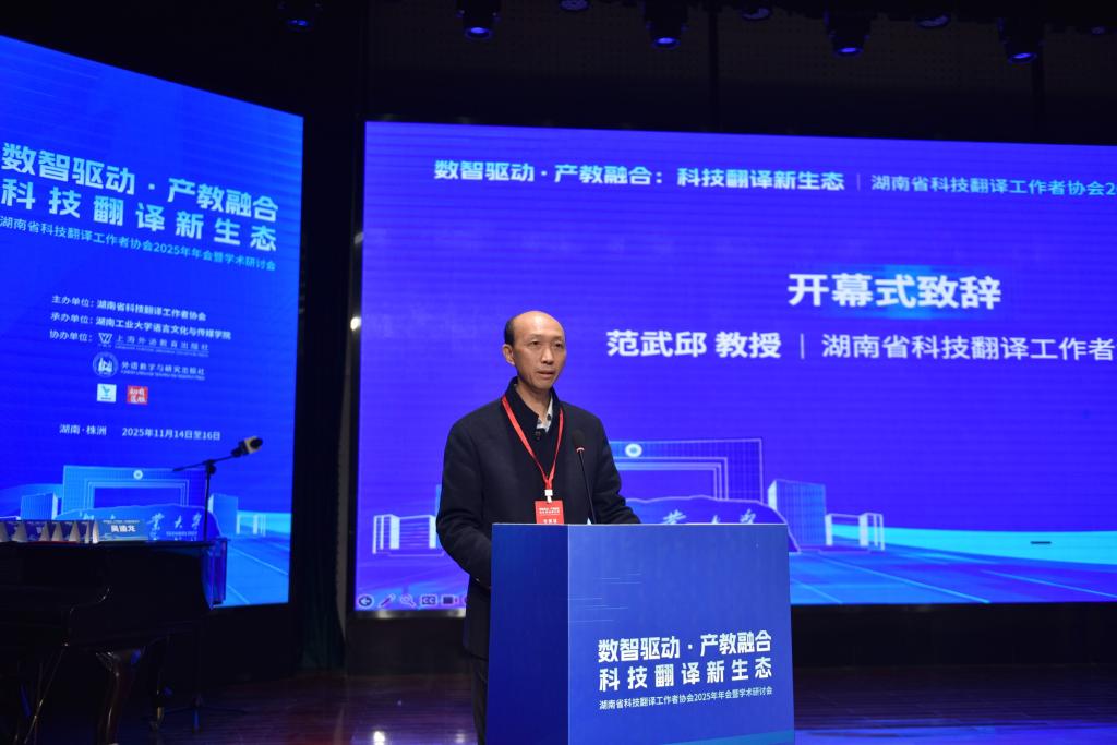 2025年11月14日至16日,由湖南省科技翻译工作者协会主办、湖南工业大学承办的湖南省科技翻译工作者协会2025年学术年会暨“数智驱动·产教融合:科技翻译新生态”学术研讨会在湖南工业大学成功举办。