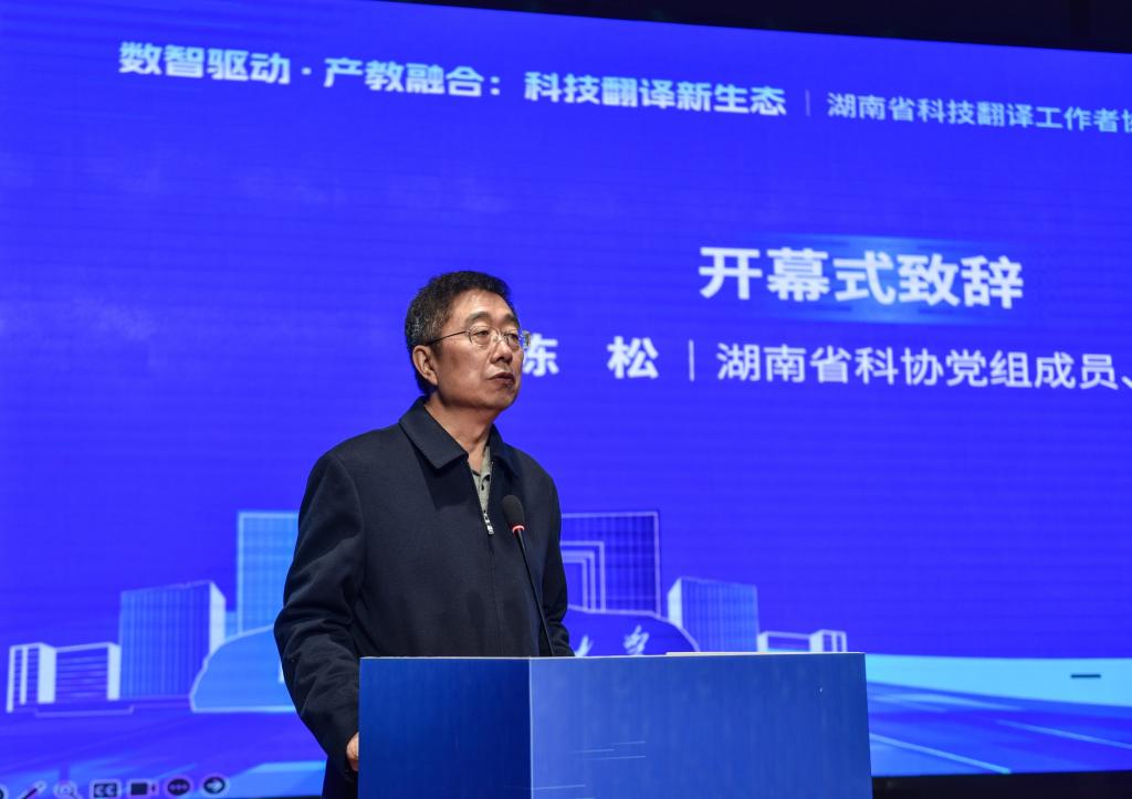 湖南省科学技术协会党组成员、副主席陈松出席开幕式并致辞。他指出,本次年会以"数智驱动·产教融合"为主题,紧扣时代发展脉搏,充分彰显了协会的前瞻视野和责任担当。陈松特别提到,在不久前中国科协主办、省科协承办的"中国—南非科技人文交流系列活动"中,协会勇挑重担,组织专业团队,以卓越的语言服务能力圆满完成了各项任务,赢得了各方高度评价,为我省民间科技外交工作贡献了重要力量。