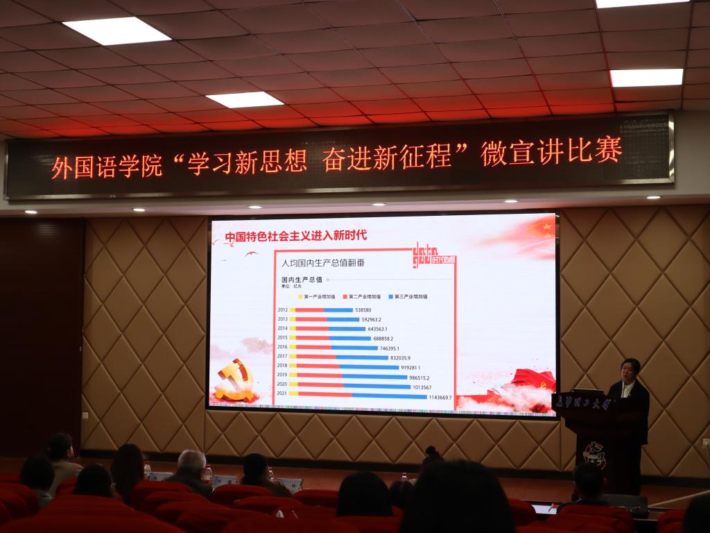 本次微宣讲比赛共有来自外国语学院各党支部的11名师生党员参赛,选手们巧妙结合党的二十大精神学习感悟和自身工作实际,以各具特色的演绎形式向全体师生党员展示了一堂堂生动的微党课。
