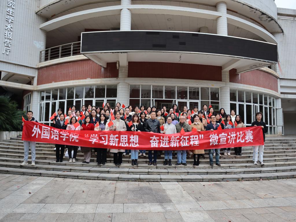 11月15日下午14:30,长沙理工大学外国语学院在云塘校区文科楼A-200学术报告厅举办了“学习新思想,奋进新征程”主题微宣讲比赛。校工会常务副主席郭剑、党政办副主任喻玲、教务处副处长邓丰、党建组织员邓豫出席活动并担任评委,外国语学院全体师生党员热情参与。