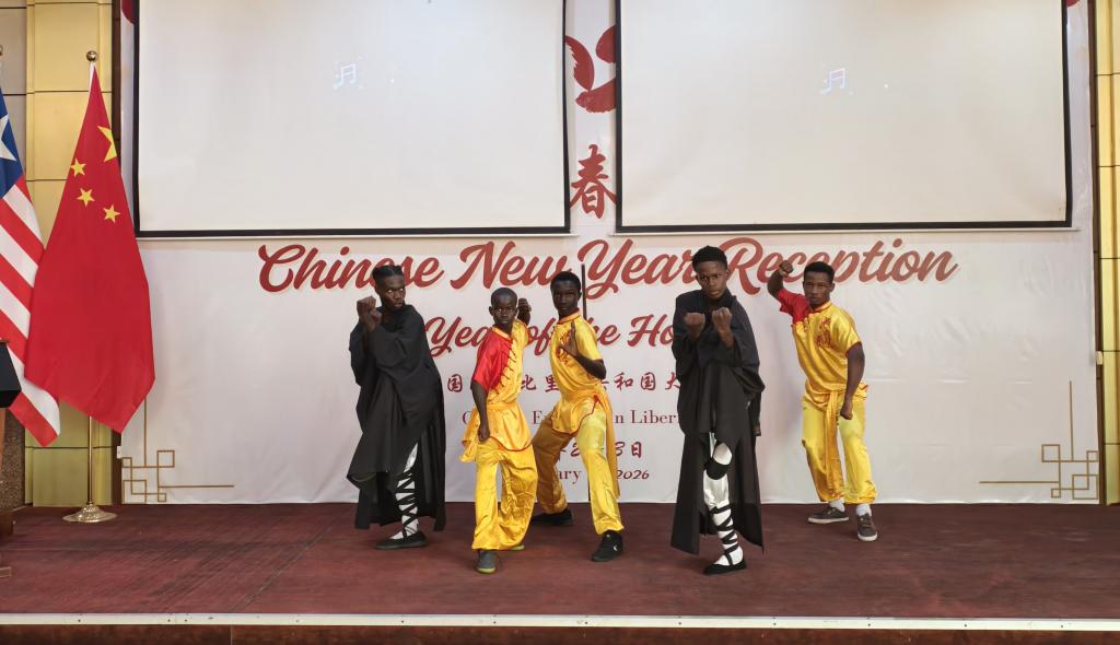 2026213日,中国驻利比里亚使馆在金门酒店举行2026年新春招待会。利比里亚大学孔子学院师生应邀参加文艺演出,与中利各界嘉宾共迎中国农历新年。招待会现场气氛喜庆热烈。利比里亚副总统康格、众议长库恩等政要,以及利各界人士、在利中资机构代表和华人华侨等300余人出席活动,共叙友谊、共话合作。