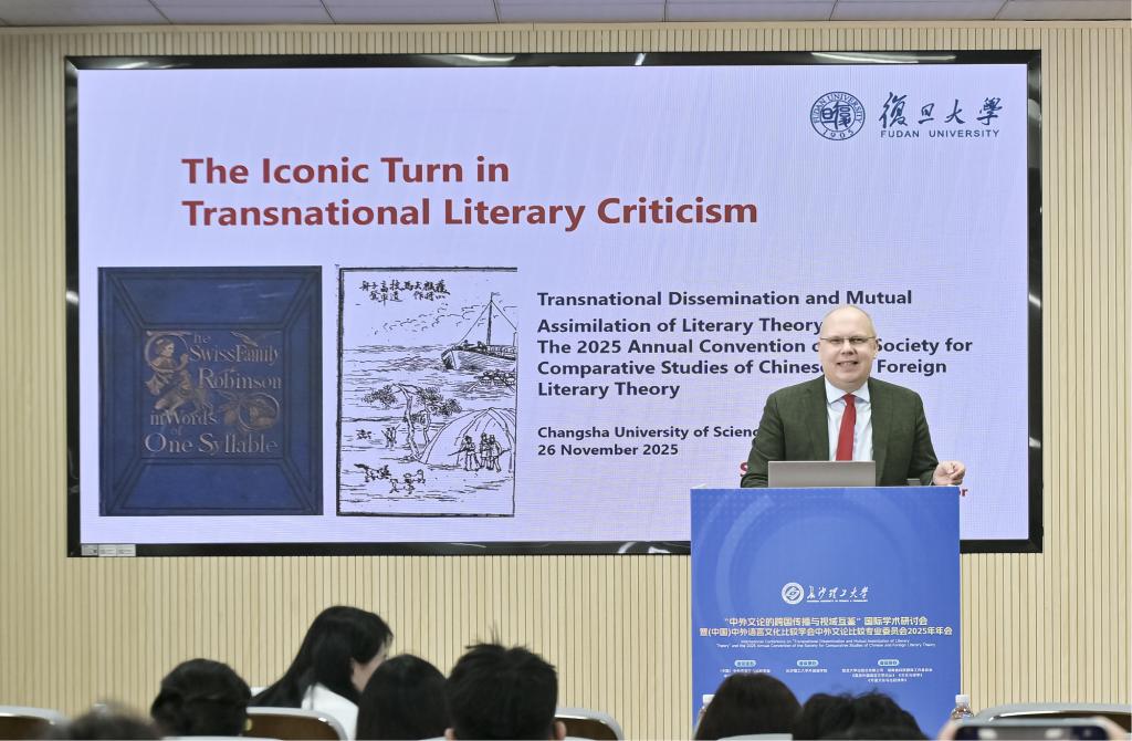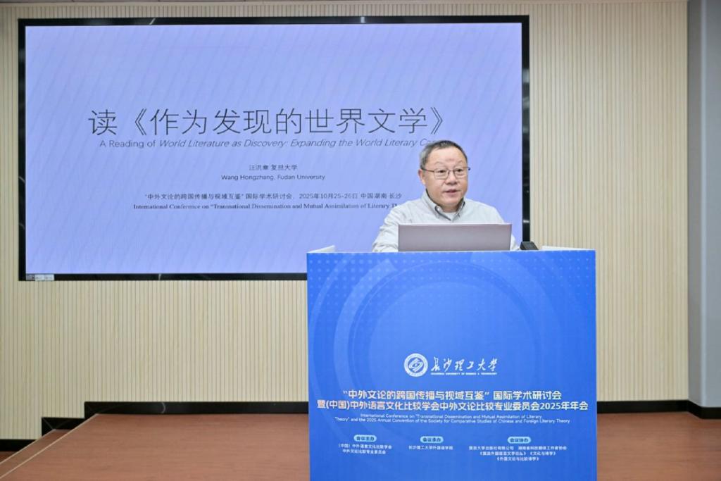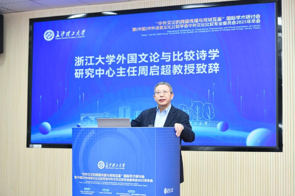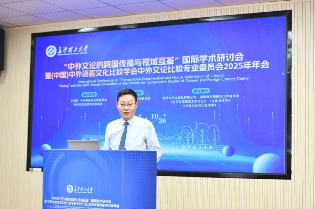 10月24日至26日,“中外文论的跨国传播与视域互鉴”国际学术研讨会暨(中国) 中外语言文化比较学会中外文论比较专业委员会2025年年会在长沙理工大学金盆岭校区隆重召开。此次会议由(中国)中外语言文化比较学会中外文论比较专业委员会主办,长沙理工大学外国语学院承办,复旦大学出版社有限公司、湖南省科技翻译工作者协会、《复旦外国语言文学论丛》《文化与诗学》《外国文论与比较诗学》协办。来自国内外高校、科研院所的专家学者齐聚长沙,围绕中外文论的跨文化传播与学术互鉴展开深度研讨,为推动全球文论研究的多元发展注入新动能。