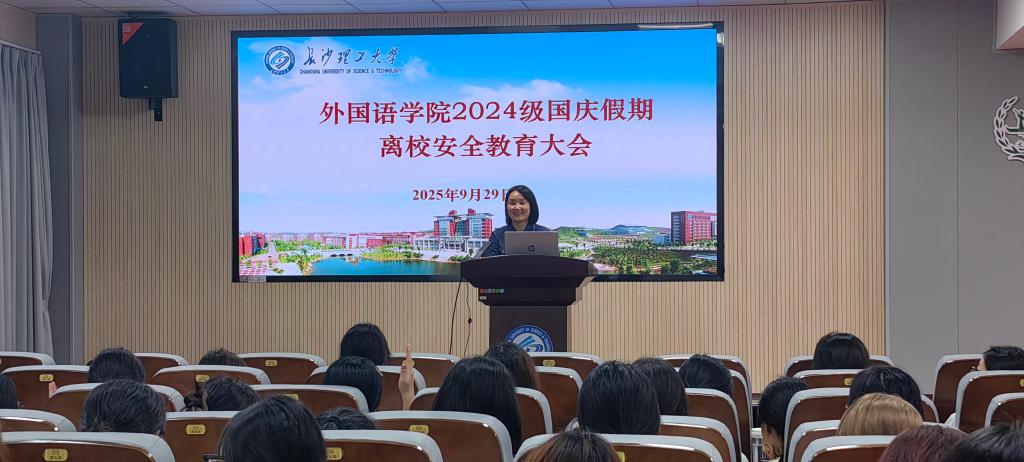 为全面总结2024级本科生上一学年的成长与收获,部署新学期的安排,并重点做好国庆假期的安全稳定工作。外国语学院于9月29日下午在3教321报告厅成功召开2024级年级大会。学院党委副书记周芳、年级辅导员郭恒及2024级全体同学共同参会。