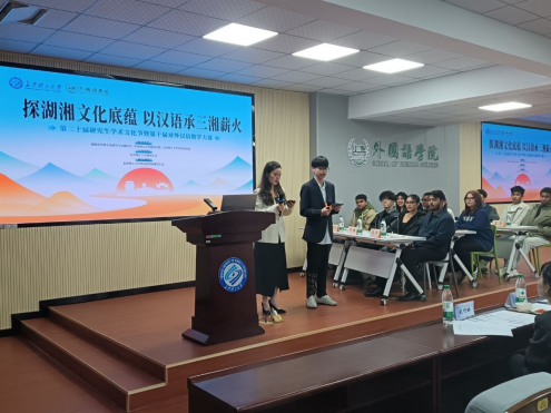 12月2日晚7点,长沙理工大学第二十届研究生学术文化节暨第十届对外汉语教学大赛决赛于金盆岭校区三教321报告厅成功举办。大赛由学院主管研究生工作姚尧副院长、专业教师钟桂蓉、黄睿、研究生辅导员武巧琳担任评委,2025级研究生李思源、李阳担任主持人,2024及2025级全体研究生参与。