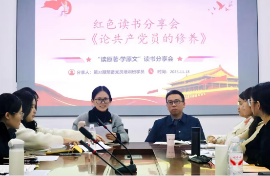 11月18日下午,外国语学院分党校于金盆岭校区3教222开展“读原著·学原文”读书分享会,本次分享会由党建辅导员毛婕主持,学院党委书记陈仁凯出席,外国语学院分党校第32期预备党员培训班学员积极参与。