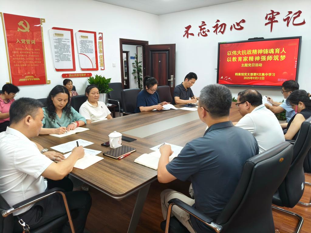 档案馆党支部开展“以伟大抗战精神铸魂育人,以教育家精神强师筑梦”主题党日活动——2025年第9次集中学习