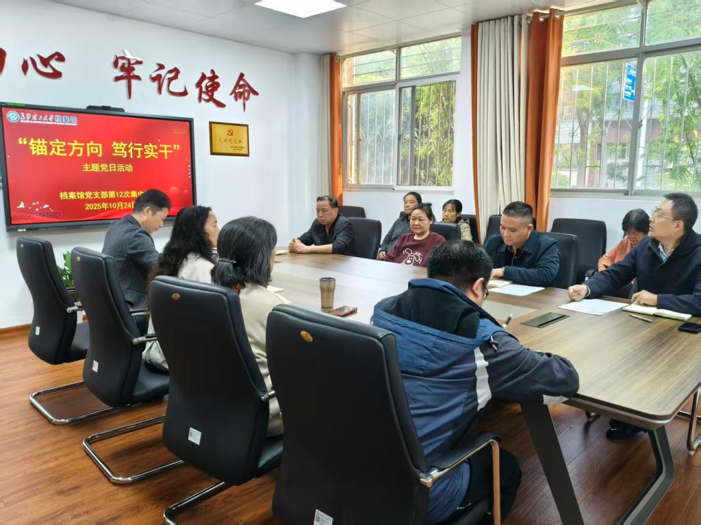 此次主题党日活动通过理论学习与业务结合、政策解读与风险警示并重的方式,为档案馆全体职工凝聚了思想共识、明确了工作方向。档案馆全体职工将持续以 “锚定方向、笃行实干” 为导向,推动理论学习常态化、业务实践精准化,切实把学习成果转化为服务学校发展、提升档案工作质效的实际行动。