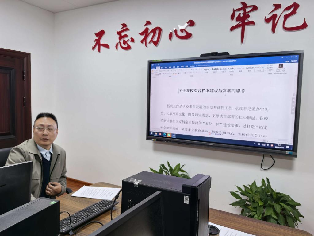 会议中,馆长陈坤传达了学校“十五五”建设与发展规划的总体精神,并要求档案工作主动融入学校发展大局,找准工作的切入点和着力点。他结合学校战略部署,作《关于编制我校“十五五”档案事业发展规划的思考与建议》专题发言,明确“十五五”期间要持续推进“档案数字化 + 服务优质化”协同发展,以数字化提升管理效能,以优质化服务创造服务价值,为学校高质量发展提供坚实的档案支撑和保障。