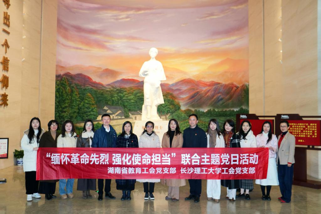1月9日,长沙理工大学工会与湖南省教育工会联合开展“缅怀革命先烈,强化使命担当”支部主题党日活动。省教育工会主席邓曼、副主席朱冠星,校党委副书记、工会主席方琼,支部全体党员参加活动。