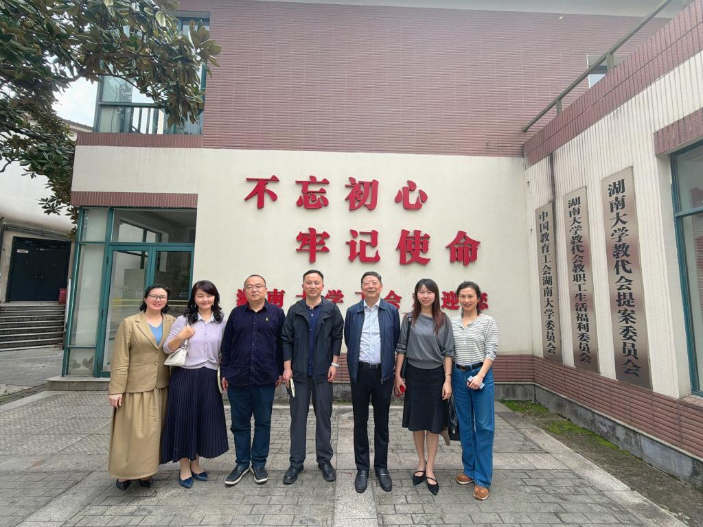 为进一步拓展工会工作思路,学习借鉴兄弟院校工会工作经验,切实推动我校工会工作提质增效,4 月 9 日下午,校工会常务副主席李伟,副主席王双、刘雪莲等一行五人,赴湖南大学开展工会工作专题调研交流。湖南大学校务委员会副主任、工会主席夏树人,副主席张平及相关工会干部在教工之家与我校调研组进行座谈交流。