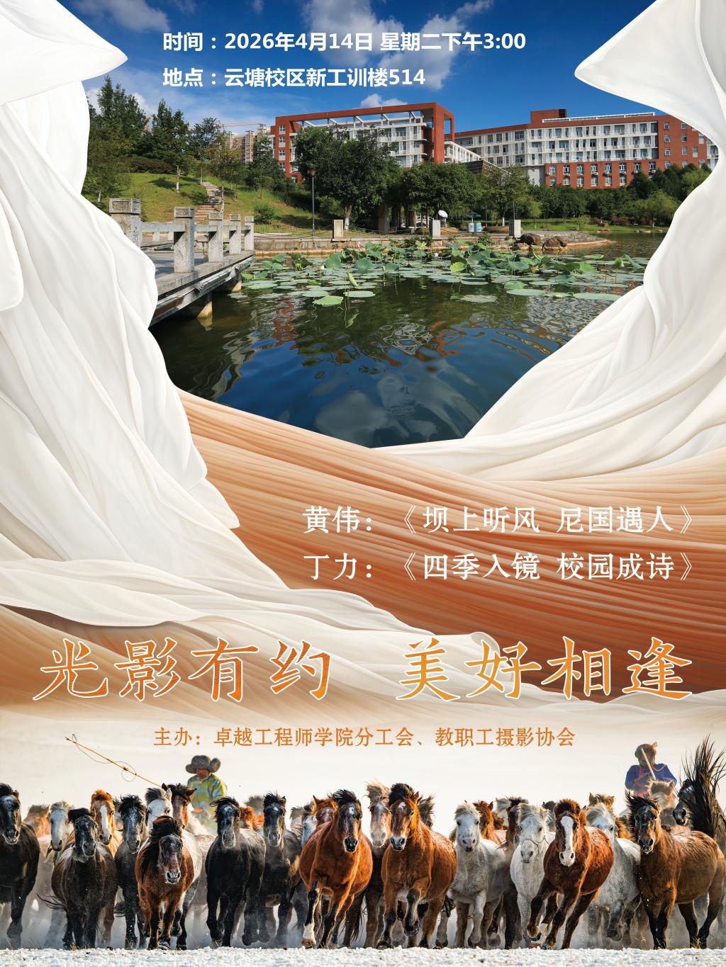 为丰富校园文化生活,提升摄影爱好者创作与审美能力,4月14日下午,我校摄影协会在能源大楼4栋514举办“诗与远方”主题摄影沙龙活动。本次沙龙特邀两位资深摄影人开展主题分享,吸引众多师生摄影爱好者到场交流学习。