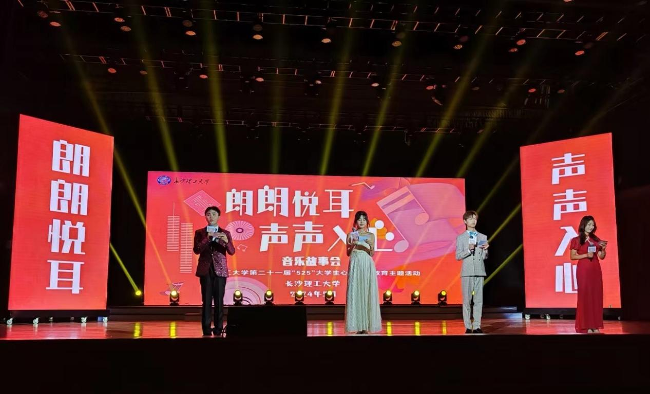 2024年5月21日晚,由长沙理工大学学生工作部主办,设计艺术学院、交通学院、国际工学院联合承办的长沙理工大学第二十一届"5·25"大学生心理健康教育主题活动“朗朗悦耳,声声入心”故事音乐会在长沙理工大学云塘校区大会堂精彩上演。会场座无虚席,长沙理工大学学工部部长邱国良、学工部各领导及老师、各学院副书记、心理辅导员以及学生九百余人到现场观看演出。音乐故事会采取“心灵成长故事”与“音乐演出”结合的方式,于“音乐树洞”的两百余份学生投稿中精心选取10个故事与观众相会,用音乐传递心声,演绎出生命的感动。