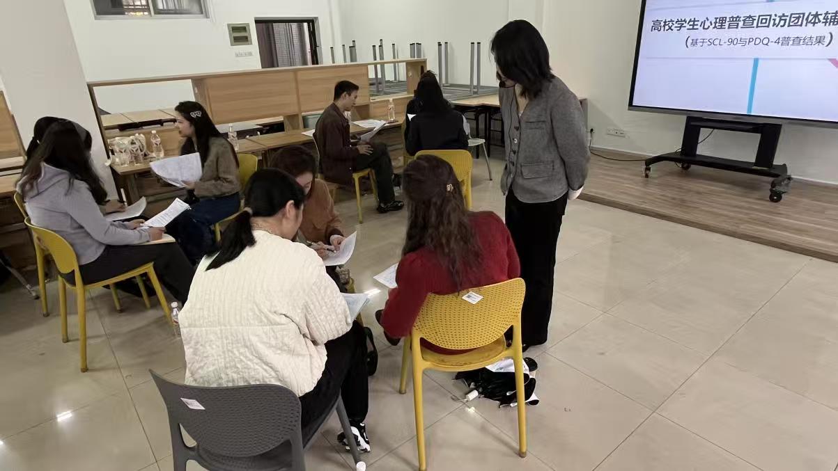 在团体辅导的最后环节,学工部副部长陶传谱强调心理普查工作是守护学生心理健康的关键环节,他鼓励各学院认真组织,主动落实,充分调动学院辅导员、班主任工作积极性,深入细致做好心理普查、普查回访及访后干预等工作。当前,我校已完成了2025年秋季学期全体在校新生(含本科生、研究生)和2023级、2024级本科生心理普查数据汇总和反馈工作,切实实现了心理普查每年覆盖全体学生的目标。