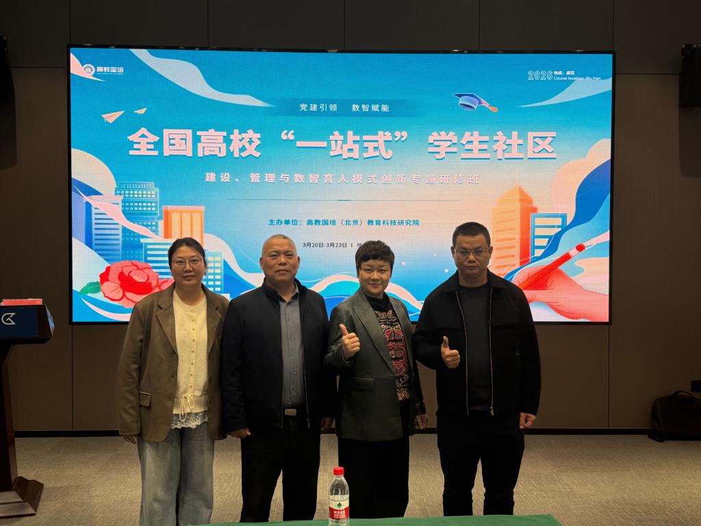 为深入贯彻落实教育部关于高校“一站式”学生社区综合管理模式建设工作部署,扎实推进党建引领、数智赋能学生社区育人体系建设,持续提升我校学生社区建设与管理质效,3月20日至22日,学生工作部副部长黄阿明带队,学生工作部公寓中心主任郭梅、公寓中心金盆岭校区负责人龙军、学生社区建设办负责人邓敏,食品与生物工程学院辅导员王凤一行赴武汉,参加全国高校专题研修并开展“一站式”学生社区建设调研交流。