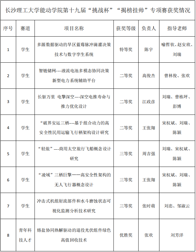 近日,由共青团中央、中国科协、教育部、全国学联联合主办的第十九届“挑战杯”竞赛2025年度中国青年科技创新“揭榜挂帅”擂台赛全国总决赛成功举办。经过激烈角逐,能动学院师生斩获8个奖项,其中特等奖1项、二等奖3项、三等奖3项、优胜奖1项,这是我院在“挑战杯”“揭榜挂帅”专项赛中首次获得特等奖,获奖等级和获奖数量均创下我院历史最佳成绩。