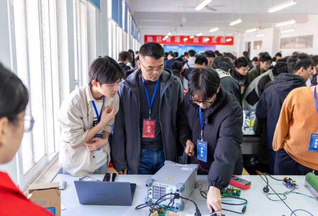 开幕式后,各参赛队伍在理科楼C403依次展示作品,并就项目创新点、技术原理及应用前景等方面现场进行阐述答辩。从智能硬件到嵌入式系统,从物联网应用到人工智能算法,参赛作品涵盖多个前沿领域,充分展现了长理学子在电子设计领域的扎实功底与创新潜力。最终,经过评审委员会评定,本届大赛自主命题组共诞生14个奖项,企业组斩获9个奖项。其中,人工智能学院李博团队“户外自主导航 3D 建图机器人”、机械与运载工程学院陈泽宇团队“激光雕刻机”拿下自主命题组特等奖;物理与电子科学学院邓志燊团队以LM25145同步降压电路、同步整流电路和工频变压器为核心的24V3A ACDCDC电源获得企业命题一等奖。