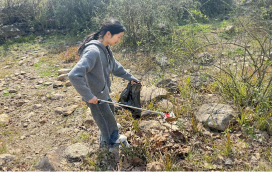滨江公园的步道上、绿化带间,一抹抹“志愿红”忙碌而有序。同学们手持垃圾夹、垃圾袋,弯腰俯身穿梭在草丛与步道旁,细致捡拾隐藏在绿植中的塑料瓶、纸屑、果皮等杂物,不放过任何一个卫生死角。“你负责沿岸区域,我来清理绿化带深处的垃圾!”水利类2406班团支书罗婕予说。大家分工明确、默契配合,指尖传递着对环境的珍视,脚步丈量着青年的责任。
