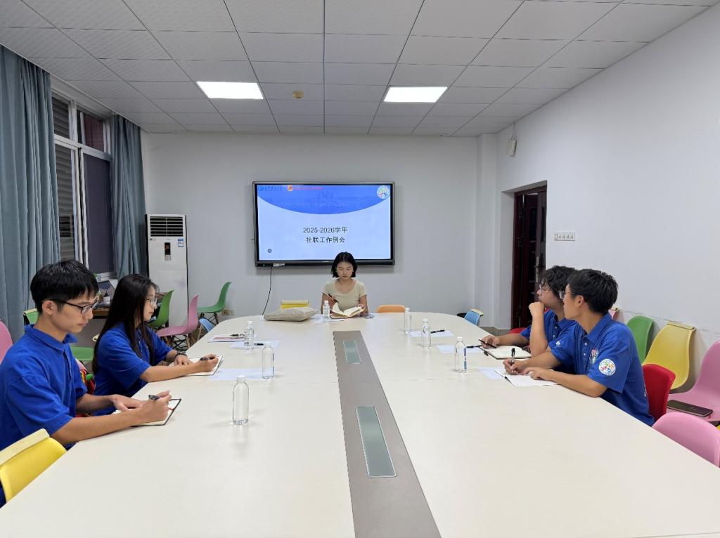 2025-2026学年学生社团联合会(以下简称学社联)工作例会于9月17日晚18:30在云塘校区学生活动中心A301顺利召开。校团委挂职副书记张歌林、校团委尹纷老师出席会议,学社联代表与会。
