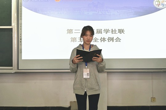 长沙理工大学第二十三届学生社团联合会(以下简称学社联)第五次全体例会于11月30日上午10:00在金盆岭校区十二教500召开,学社联主席团与各部门成员与会。