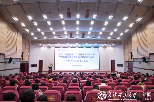 随后,汪双杰以《赓续“两路精神”:三代冻土科研人用生命和智慧攀登冻土高速公路科学高峰》为题为在场师生作学术报告,深入阐释了“两路精神”的历史脉络与时代内涵。他结合中交集团七十余年在青藏、川藏等极端环境下的工程实践,生动讲述了三代科研工作者接力攻坚、破解高海拔冻土地区筑路世界性难题的奋斗历程。报告重点阐述了当前进藏高速公路建设面临的关键挑战与技术突破,展现了团队在冻土路基稳定性、桥梁隧道抗灾韧性等领域的创新成果,彰显了中国科技工作者不畏艰险、服务国家战略的使命担当。