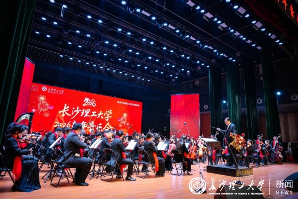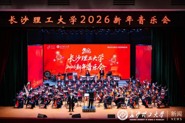 1月6日下午,“高雅艺术进校园”长沙理工大学2026新年音乐会在云塘校区大会堂举行。活动由湖南省教育厅、中共湖南省委宣传部、湖南省财政厅、湖南省文旅厅主办,长沙交响乐团与我校联合承办。校长蒋昌波及全体在家校领导、长沙交响乐团总经理陈照等嘉宾与学校1300余名师生代表共同观赏演出。